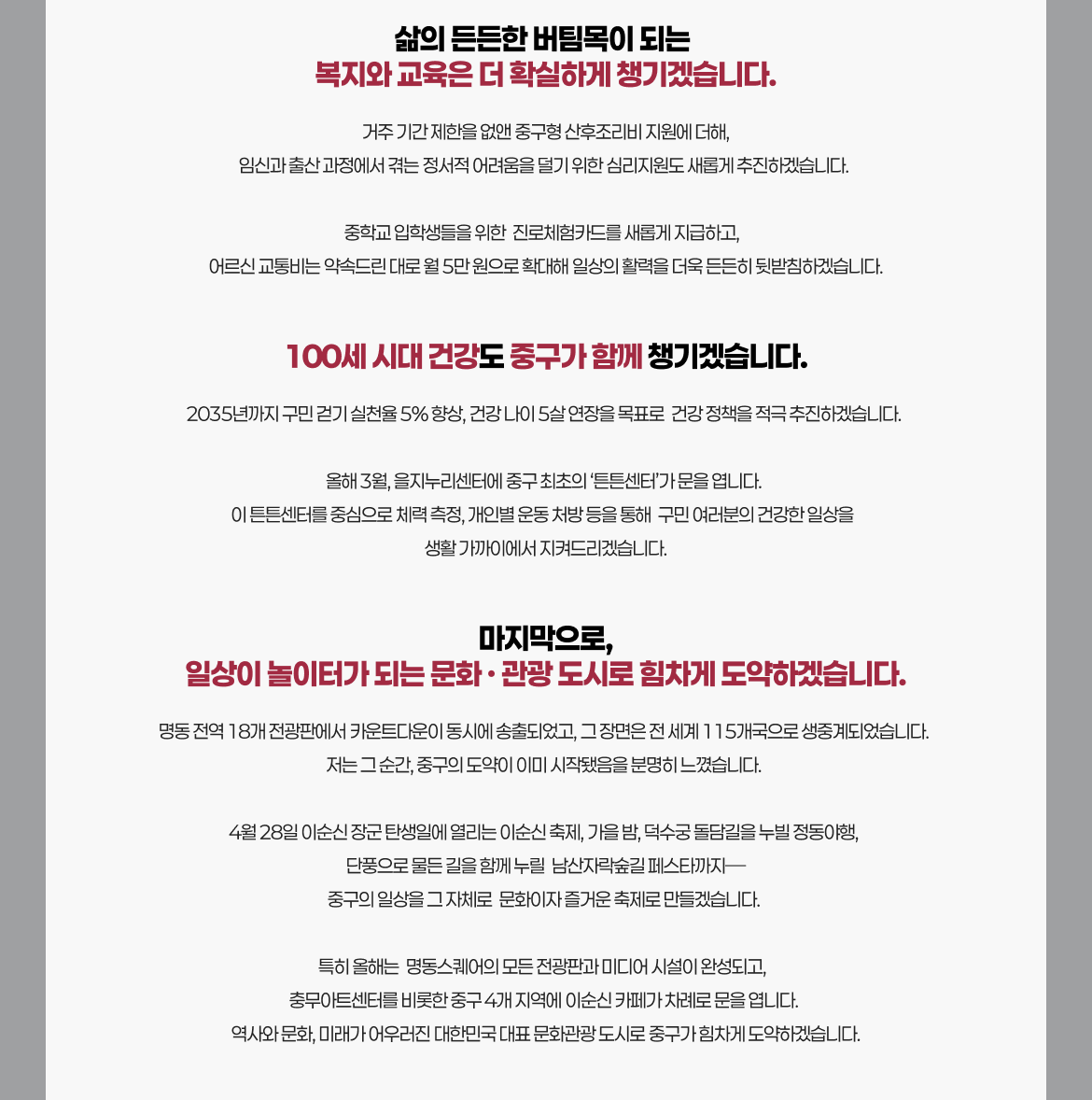 중구의 내일을 믿고 함께해 주시기를 부탁드립니다.