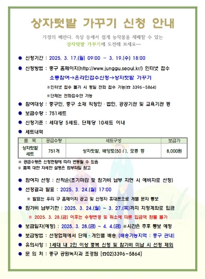 | 2025년 상자텃밭 가꾸기 신청안내 | |||
