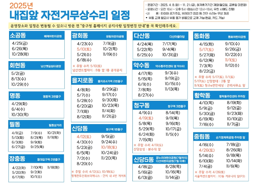 | 2025년 중구 내집앞 자전거무상수리센터 시행 안내 | |||