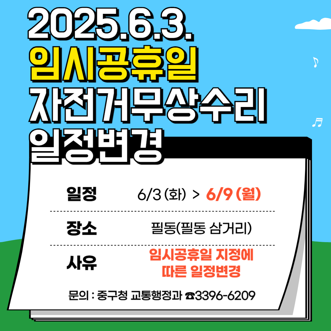 | (2025. 6. 3. 임시공휴일) 자전거 무상수리 일정변경 안내 | |||