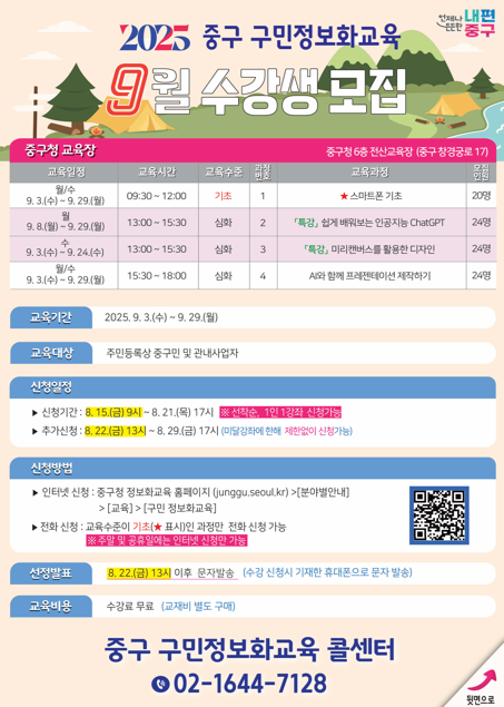 | 2025년 9월 구민 정보화교육 모집 안내 | |||
