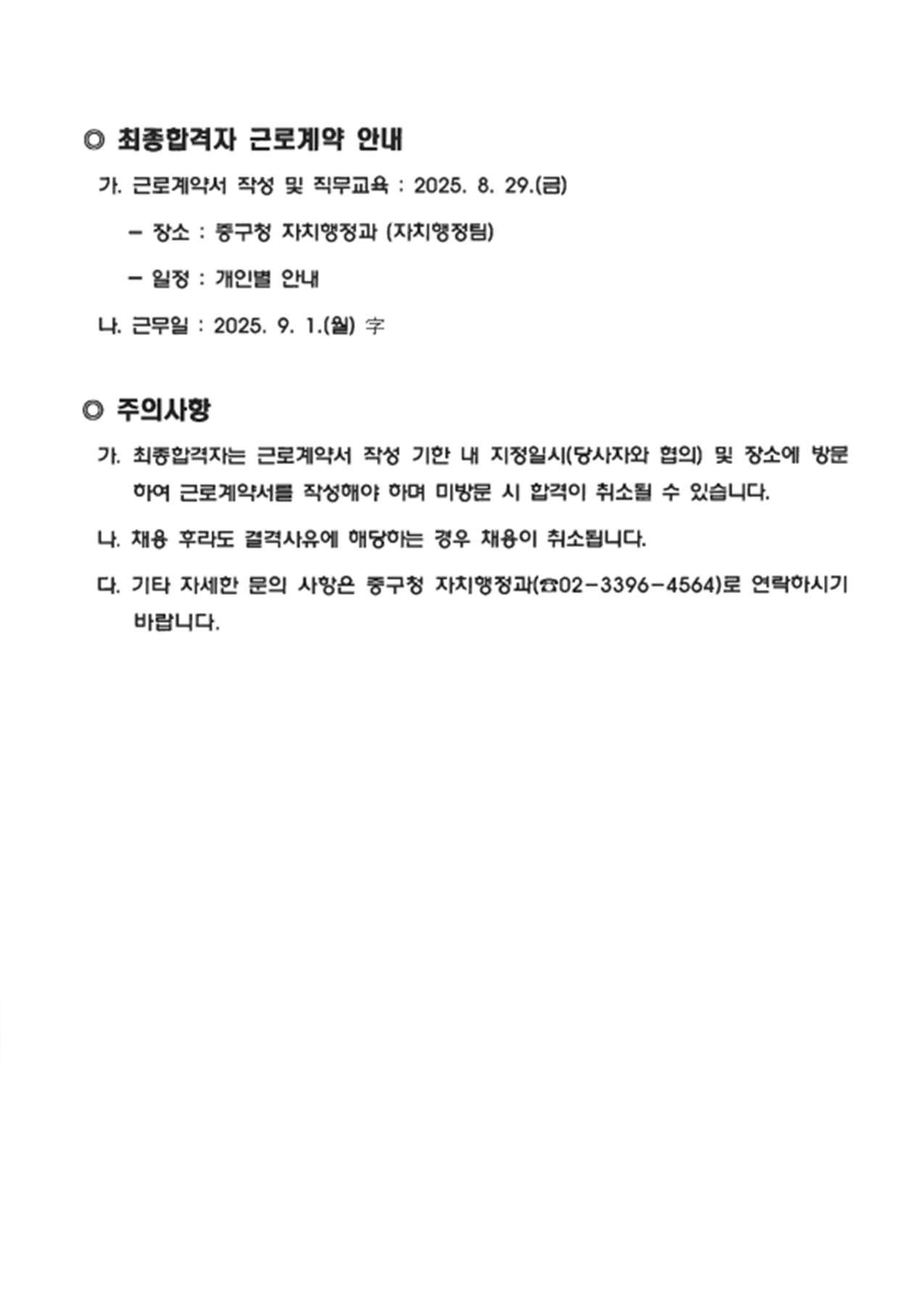 | 2025년 동 민원안내보안관 기간제근로자 최종합격자 발표 | |||