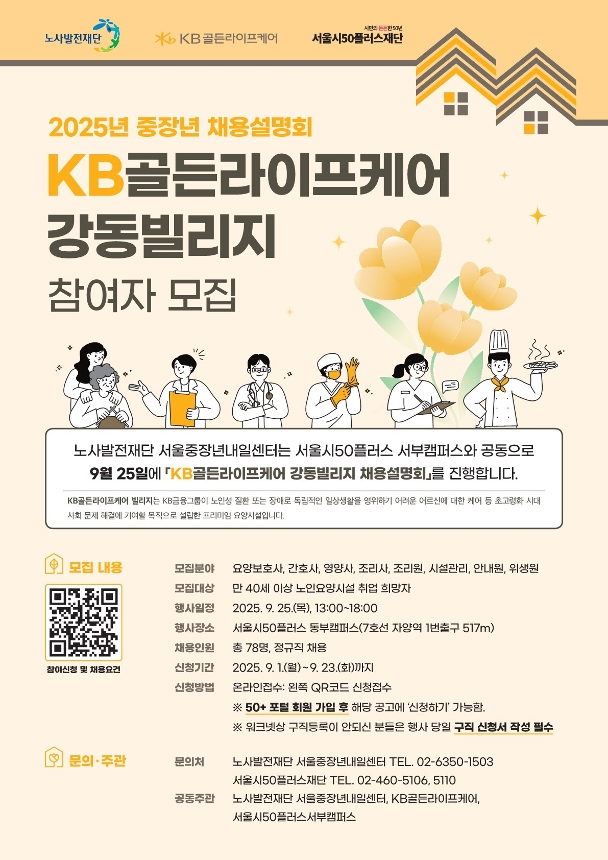 | [서울중장년내일센터] KB골든라이프케어 강동빌리지 채용설명회 참여자 모집 | |||