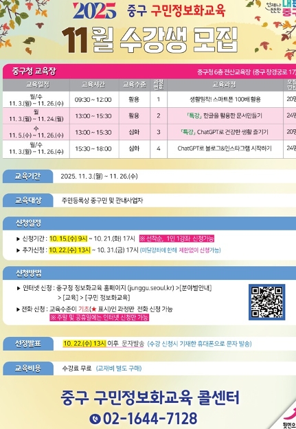 2025년 11월 구민 정보화교육 모집하오니 많은 신청 바랍니다.![]()