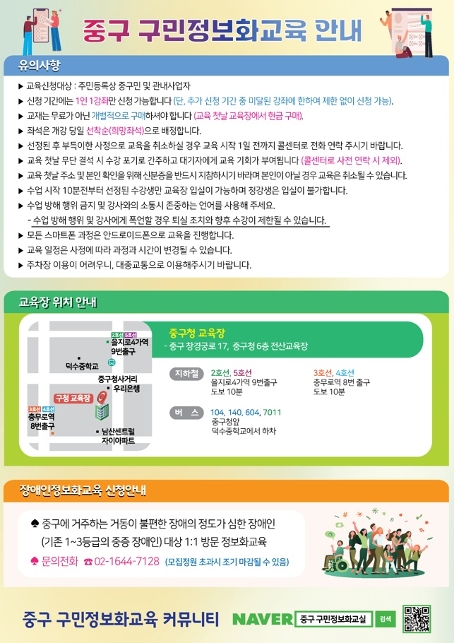 | 다음글 | 2025년 10월 구민 정보화교육 대상자 및 추가접수 안내 |