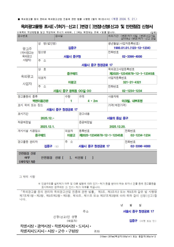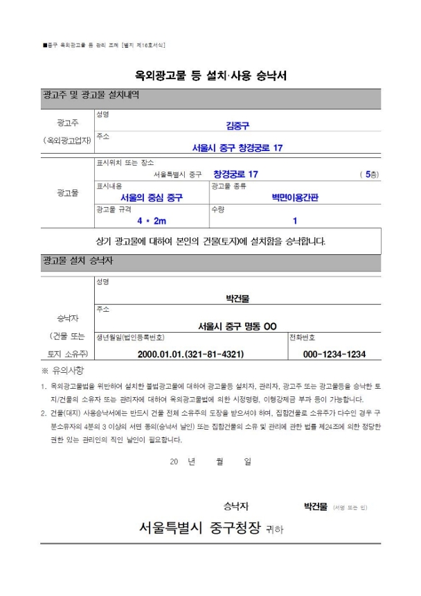 | 이전글 | 옥외광고물 [연장] 허가 신청서 |