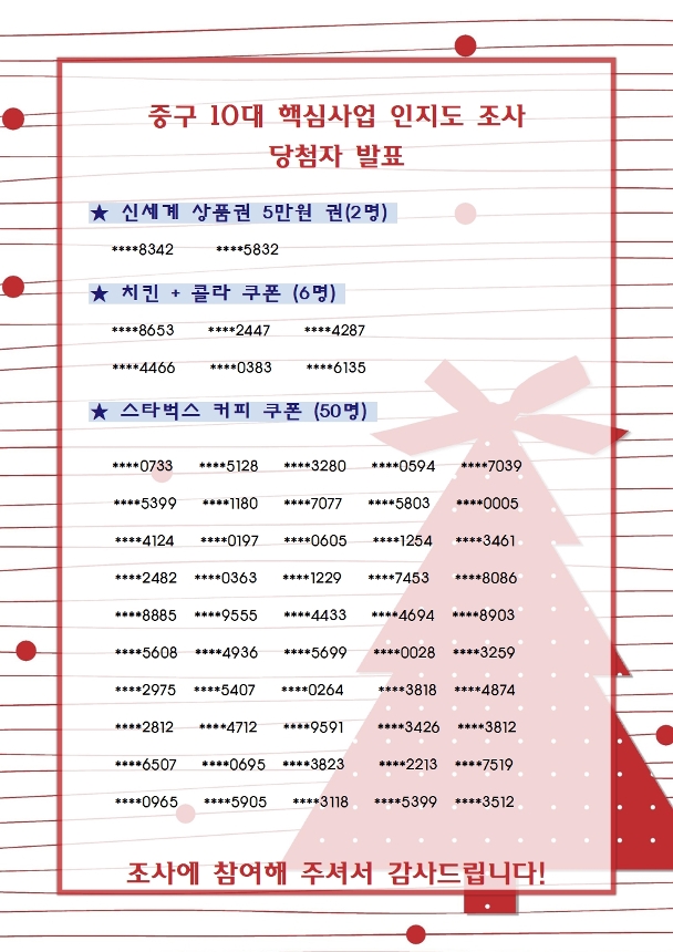 | <중구 10대 핵심사업 인지도 조사> 경품 당첨자 발표 | |||