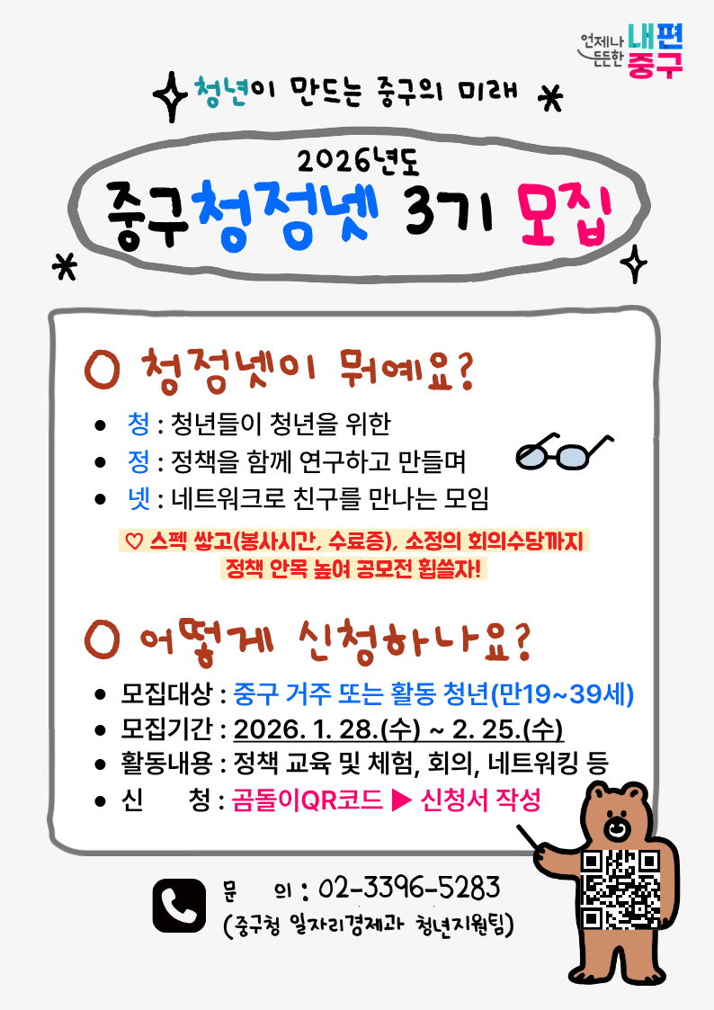| 2026년 중구 청년정책네트워크(중구청정넷) 3기 위원 모집 | |||