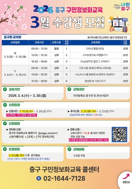 2026년 3월 구민 정보화교육 모집하오니 많은 신청 바랍니다.![]()