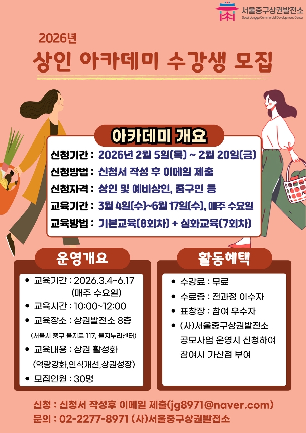 | 서울중구 상권발전소 2026년 상인아카데미 수강생 모집 안내 | |||