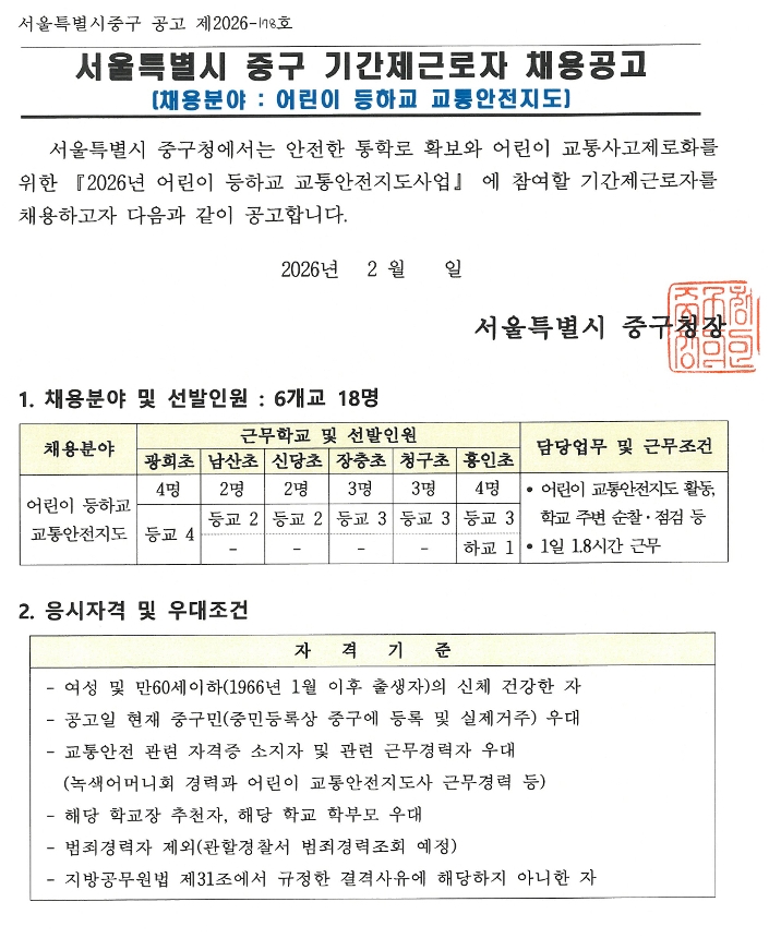 | 다음글 | 2026년 상반기 중구 지역공동체일자리사업 참여자 모집 재공고 |