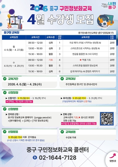 | 2026년 4월 구민 정보화교육 모집 안내 | |||