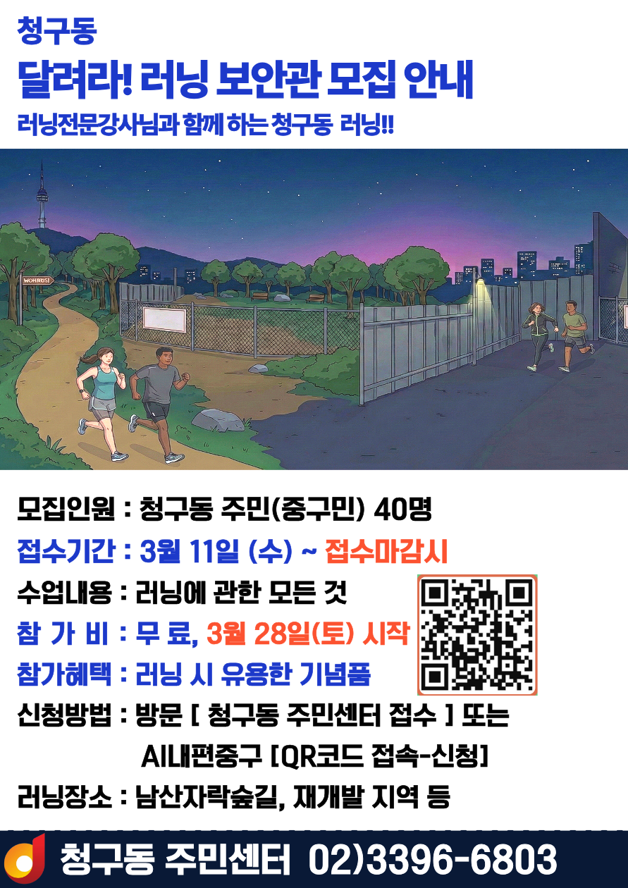 청구동 러닝보안관 접수기간 연장합니다. 많은 참여 부탁드려요 ~^^