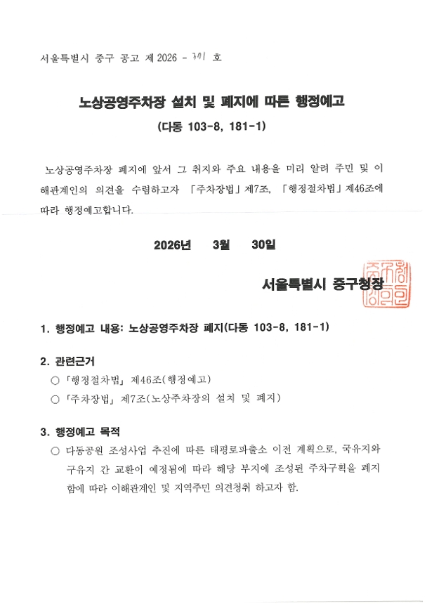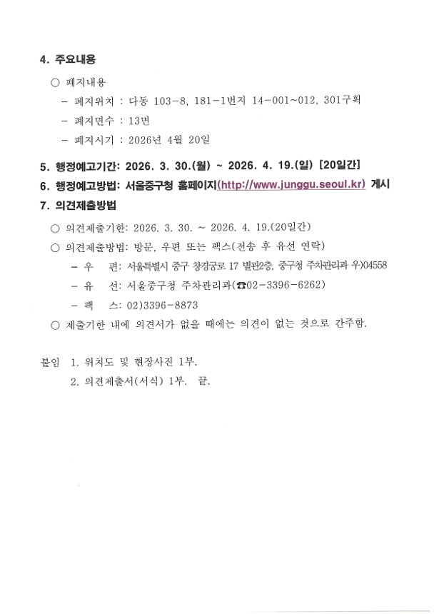 | 노상(거주자우선)주차장 폐지에 따른 행정예고 | |||