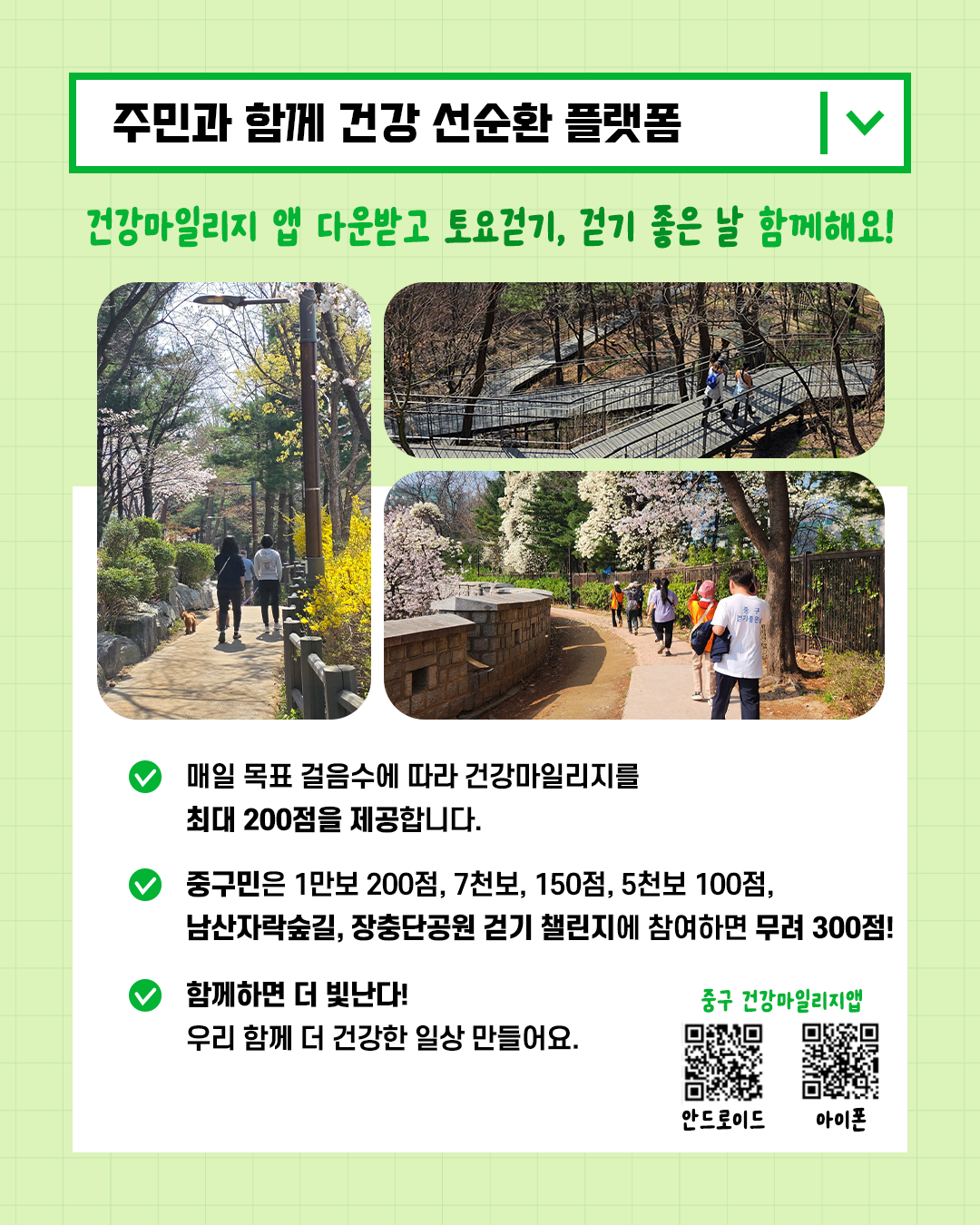 - 걸음마다 쌓이는 혜택! 건강도, 마일리지도 UP! 중구 건강마일리지 앱 & 건강지도자