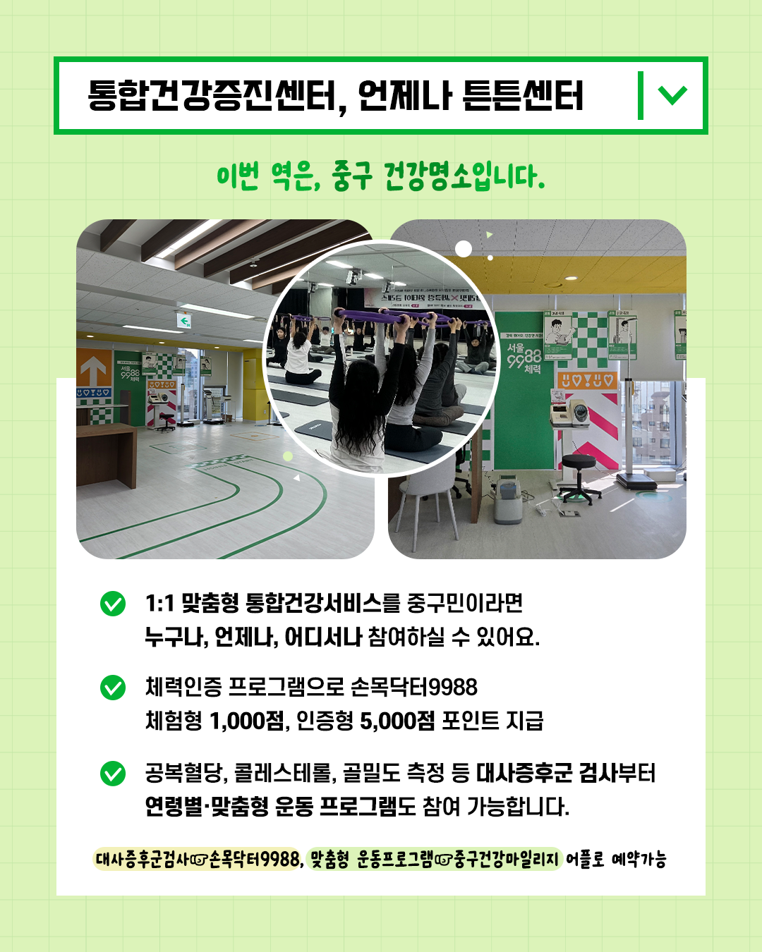 들숨에 건강을, 날숨에 체력을 담아 중구의 다양한 건강정책을 소개합니다
