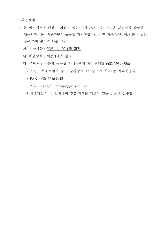 서울시중구청 (우)04558 서울시 중구 창경궁로17 (예관동)