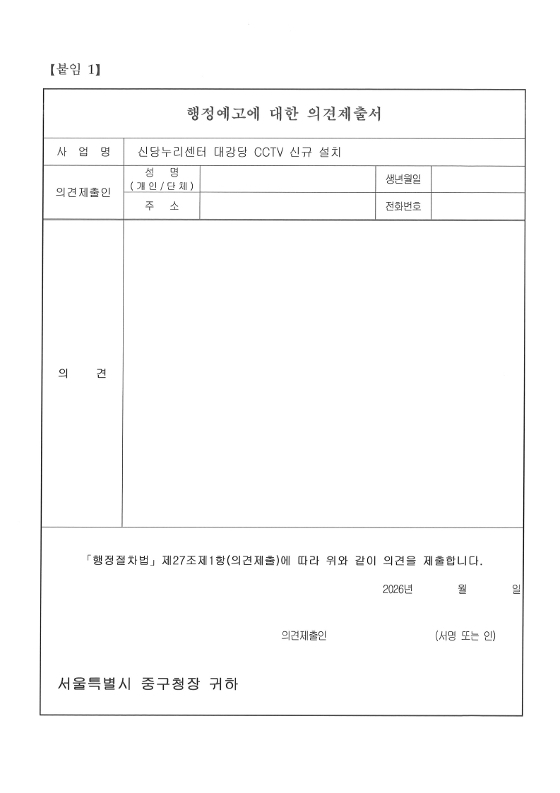 | 신당누리센터 대강당 CCTV 설치에 따른 행정예고 공고 | |||