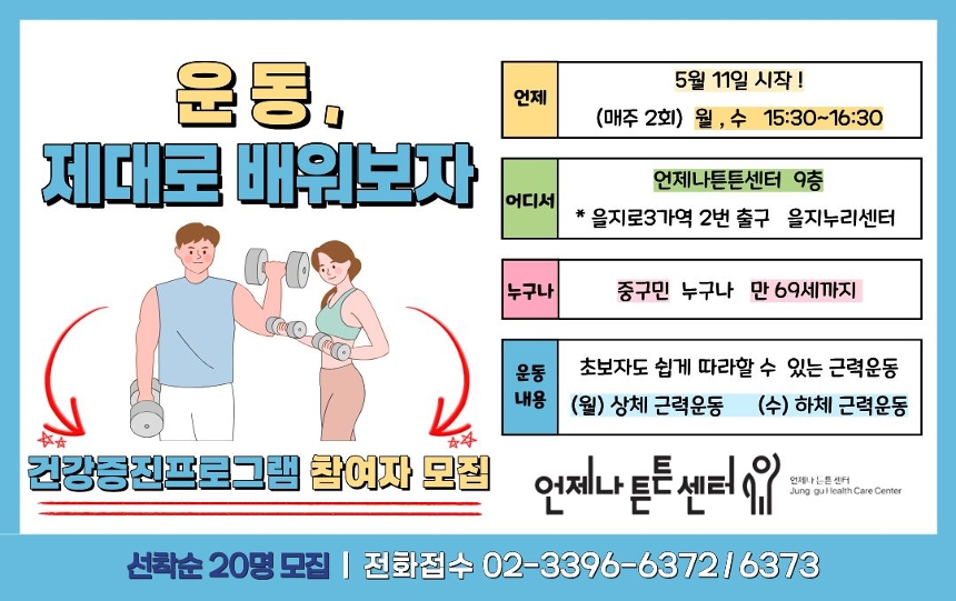 * 언제나튼튼센터에서 중구민 누구나 언제든 참여 가능한 건강증진프로그램 참여자를 모집합니다! *