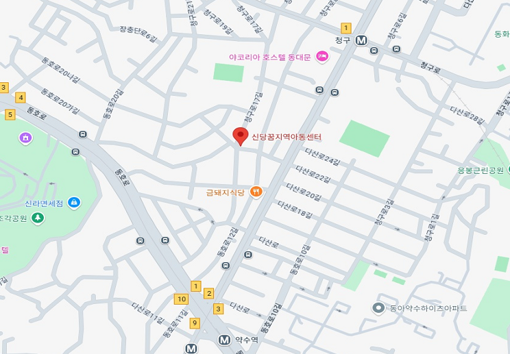 신당꿈구립지역아동센터 : 중구 다산로 21길 23, 1층 (☎ 02-2297-5518)
