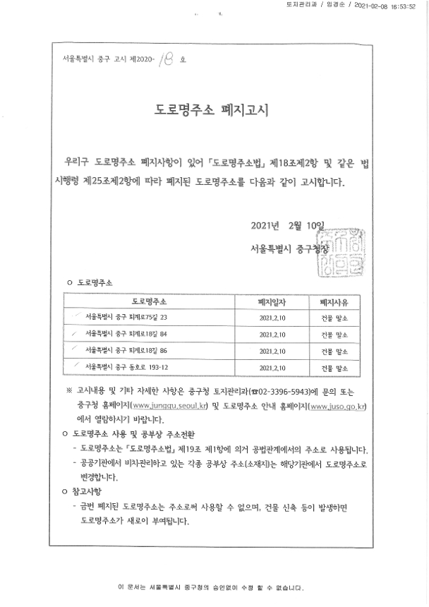 | 제목 | 도로명주소 폐지고시 | ||
