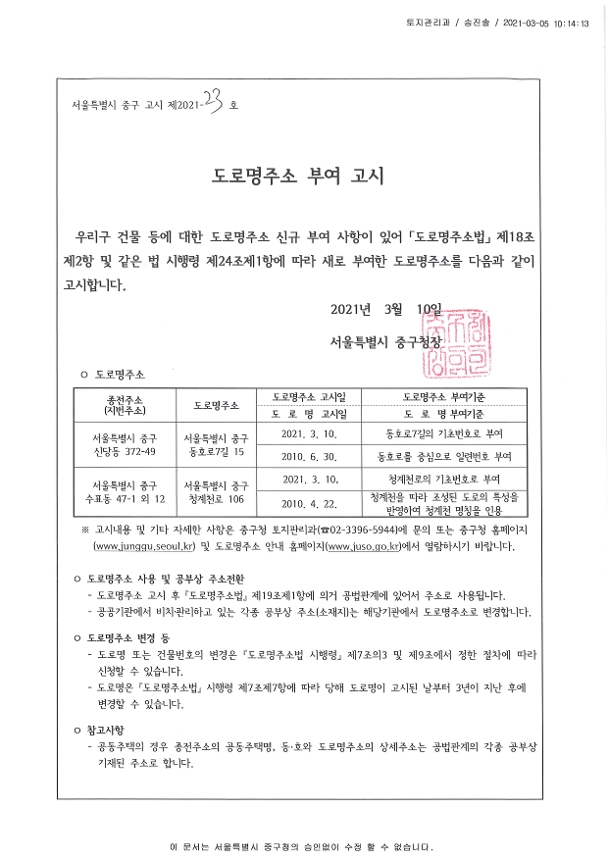 | 분류 | 일반공공행정 > 일반행정 > 주소정책 > 도로명주소 부여 및 폐지 고시 | ||