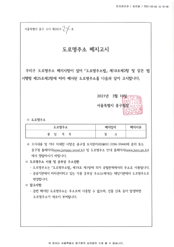 | 제목 | 도로명주소 폐지 고시 | ||