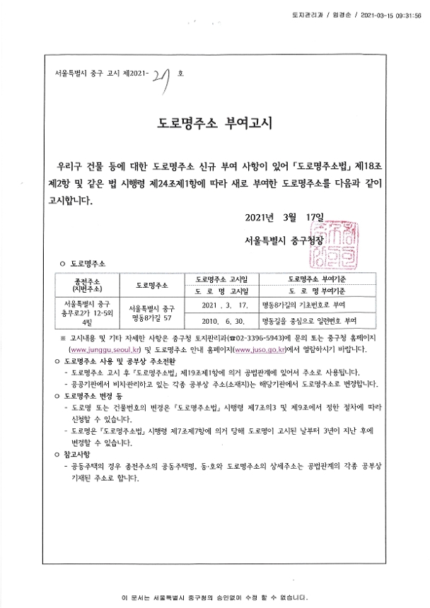 | 분류 | 일반공공행정 > 일반행정 > 주소정책 > 도로명주소 부여 및 폐지 고시 | ||