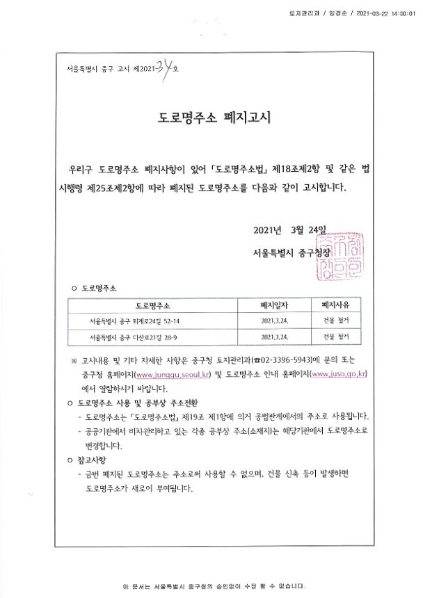 | 분류 | 일반공공행정 > 일반행정 > 주소정책 > 도로명주소 부여 및 폐지 고시 | ||
