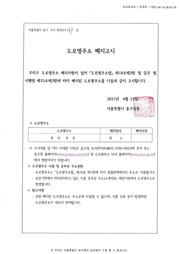 | 제목 | 도로명주소 폐지고시 | ||
