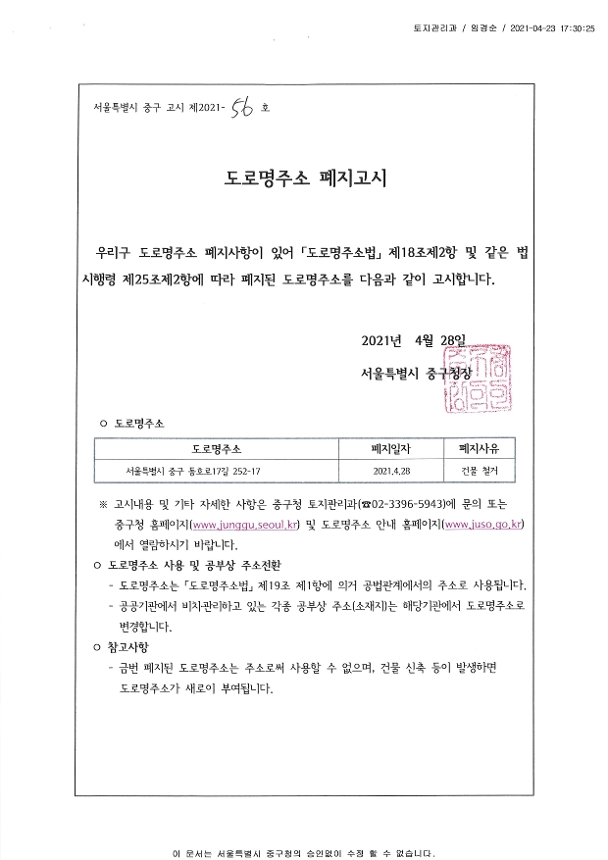 | 제목 | 도로명주소 폐지고시 | ||