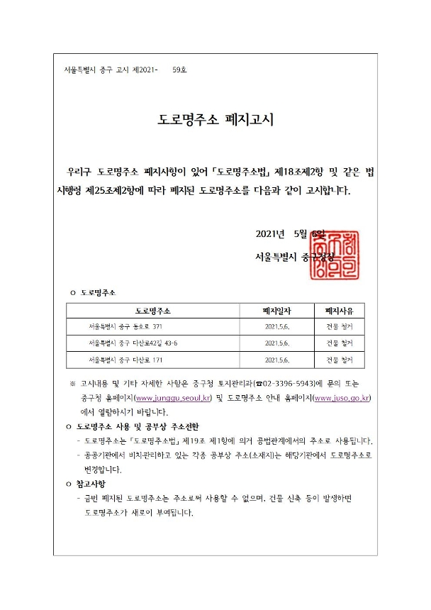 | 제목 | 도로명주소 폐지 고시 | ||