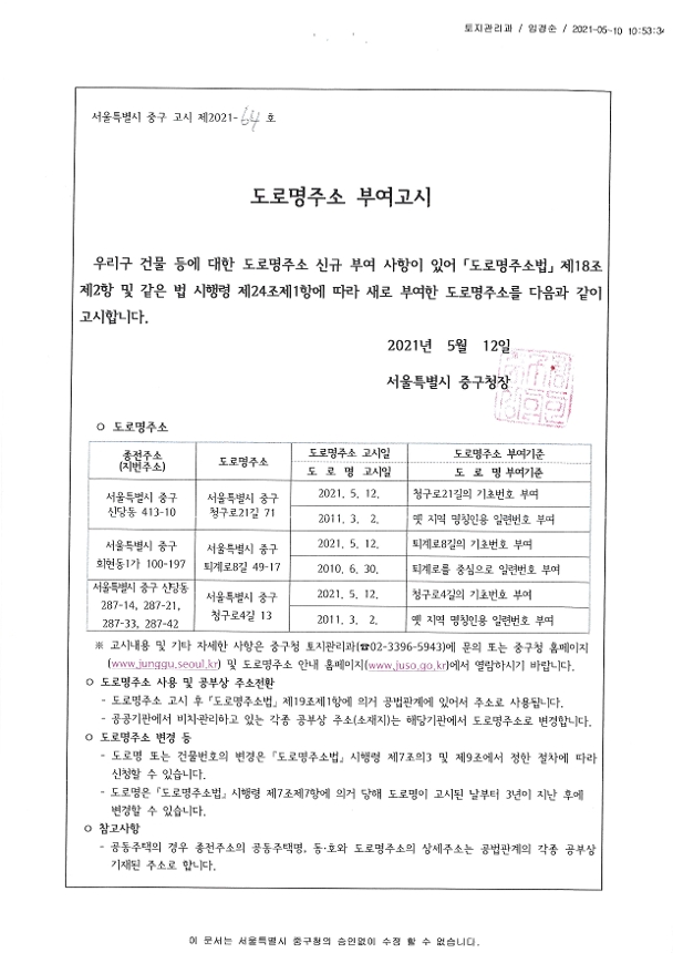| 분류 | 일반공공행정 > 일반행정 > 주소정책 > 도로명주소 부여 및 폐지 고시 | ||