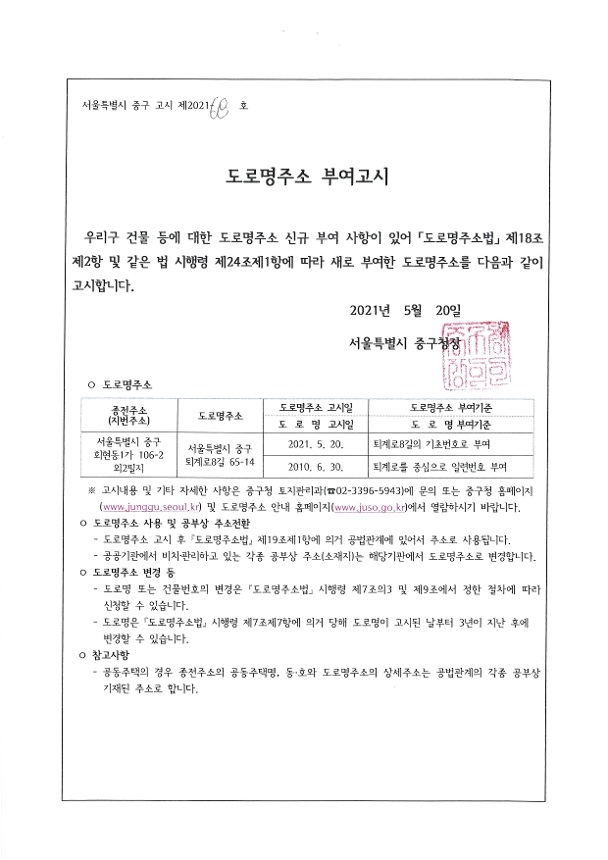 | 분류 | 일반공공행정 > 일반행정 > 주소정책 > 도로명주소 부여 및 폐지 고시 | ||