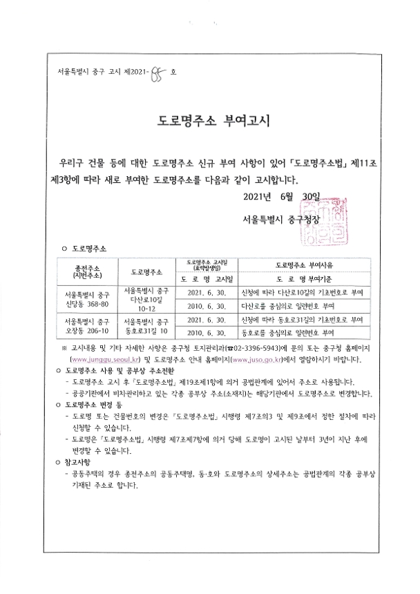| 분류 | 일반공공행정 > 일반행정 > 주소정책 > 도로명주소 부여 및 폐지 고시 | ||