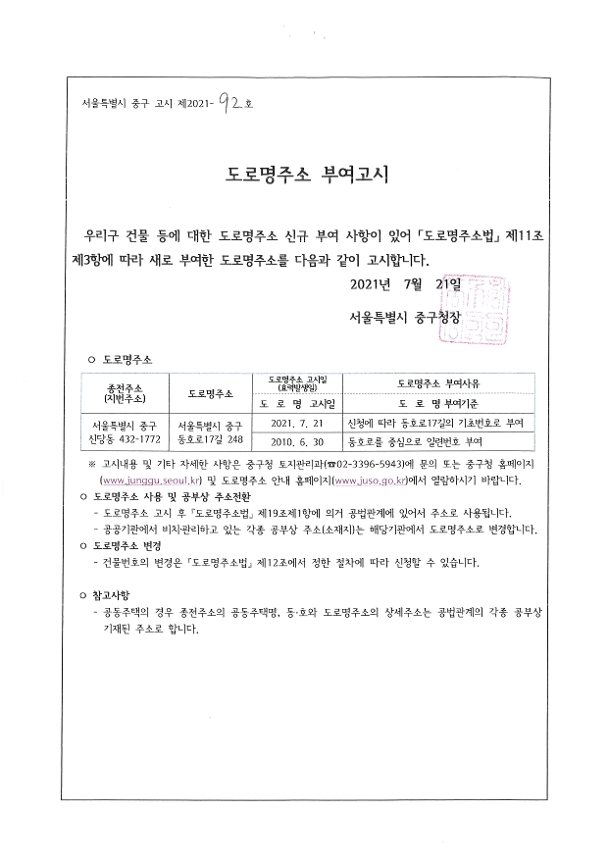 | 분류 | 일반공공행정 > 일반행정 > 주소정책 > 도로명주소 부여 및 폐지 고시 | ||