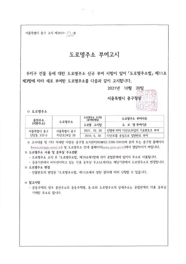 | 분류 | 일반공공행정 > 일반행정 > 주소정책 > 도로명주소 부여 및 폐지 고시 | ||