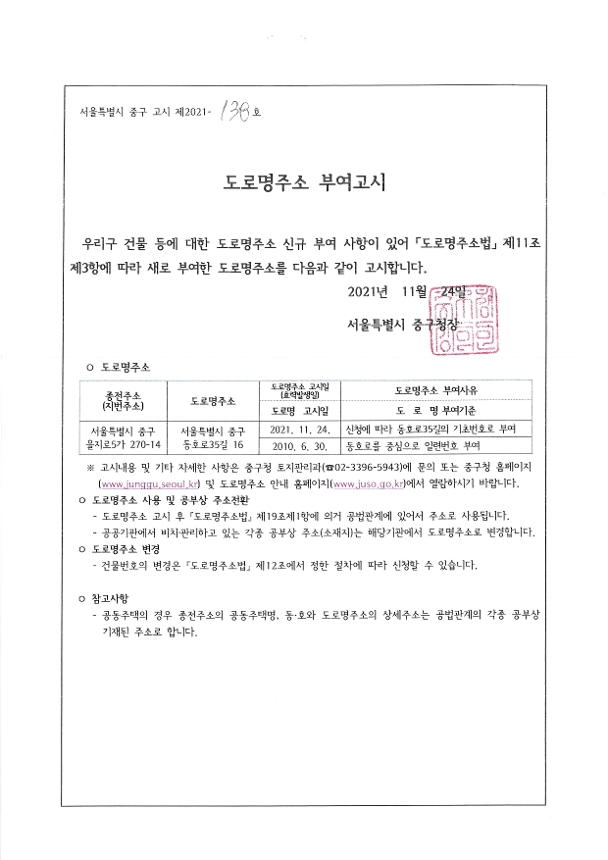 | 제목 | 도로명주소 부여고시 | ||