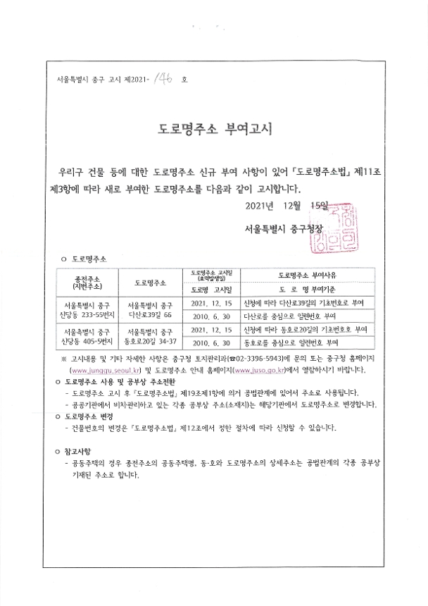 | 제목 | 도로명주소 부여고시 | ||