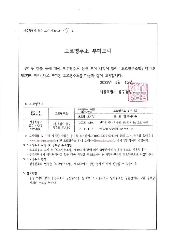 | 제목 | 도로명주소 부여고시 | ||