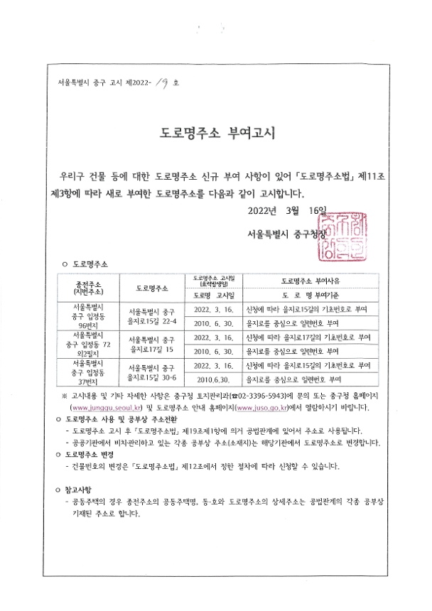분류 일반공공행정 > 일반행정 > 주소정책 > 도로명주소 부여 및 폐지 고시