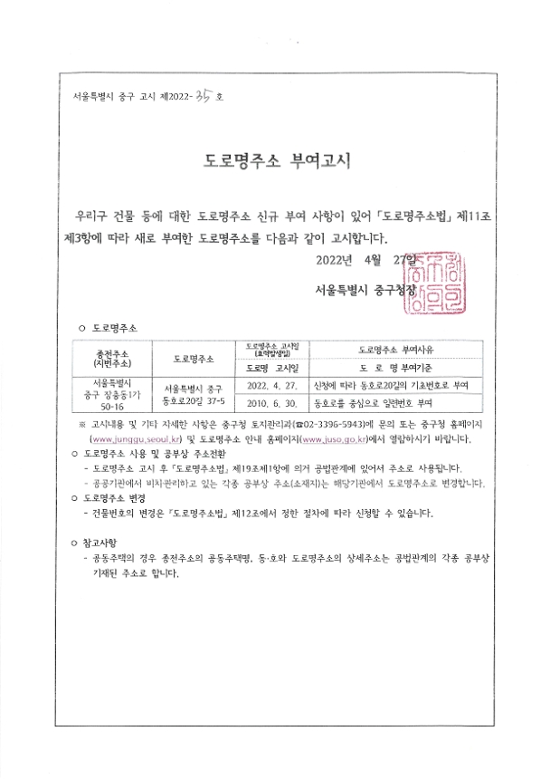 | 분류 | 일반공공행정 > 일반행정 > 주소정책 > 도로명주소 부여 및 폐지 고시 | ||