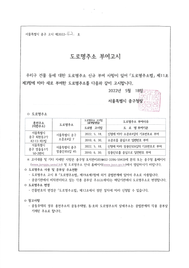 | 분류 | 일반공공행정 > 일반행정 > 주소정책 > 도로명주소 부여 및 폐지 고시 | ||