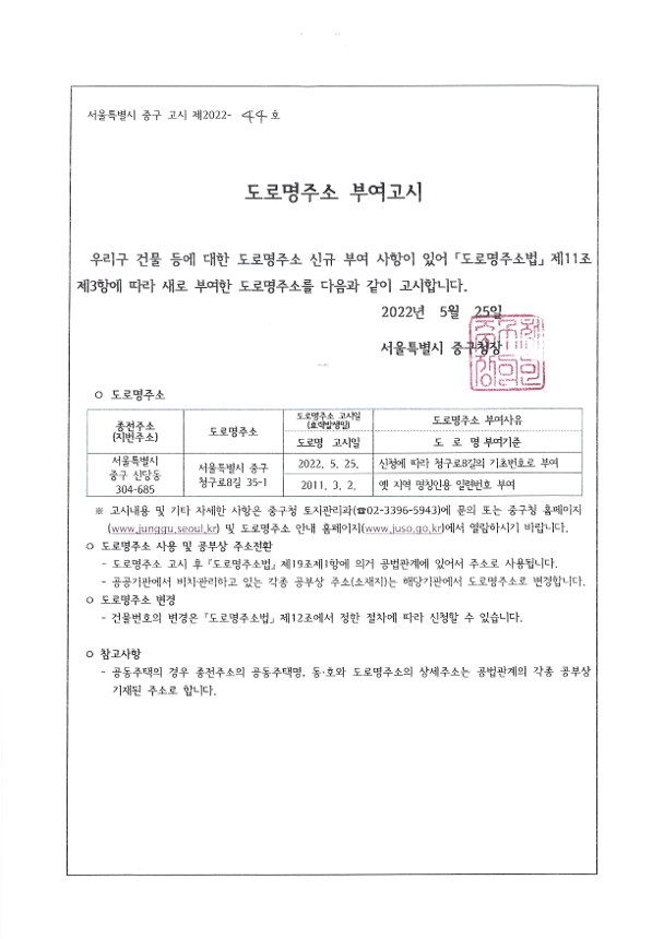 | 분류 | 일반공공행정 > 일반행정 > 주소정책 > 도로명주소 부여 및 폐지 고시 | ||