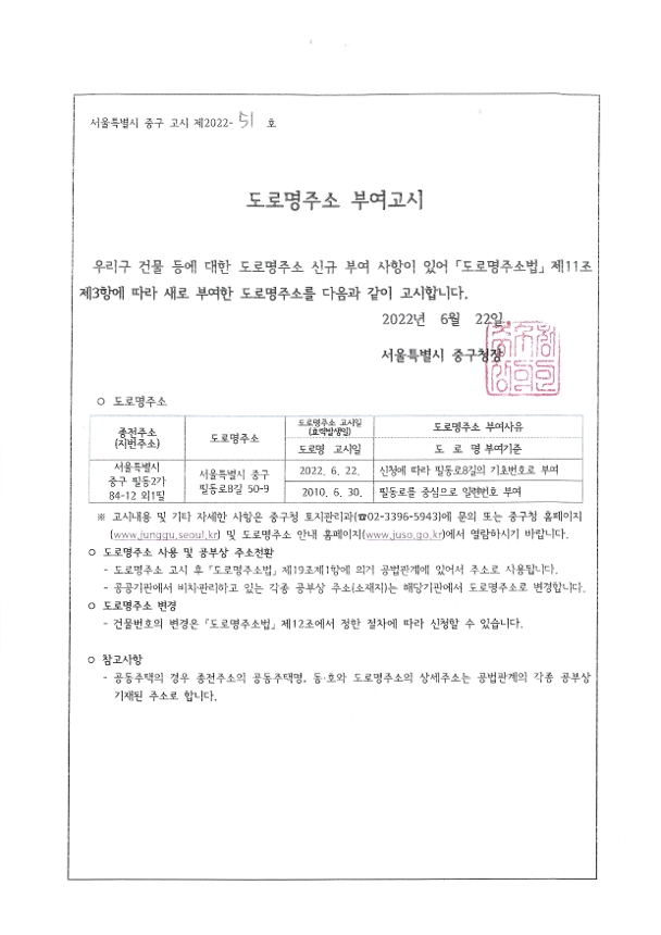 분류 일반공공행정 > 일반행정 > 주소정책 > 도로명주소 부여 및 폐지 고시