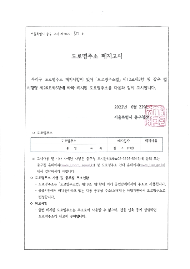 | 제목 | 도로명주소 폐지고시 | ||