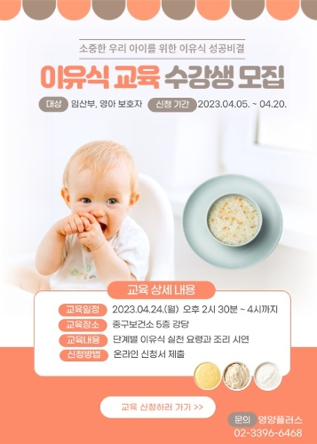 | 제목 | [신청]이유식 교육 수강생 모집 | ||