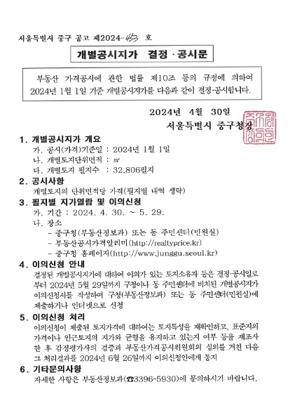| 제목 | 2024.1.1.기준 개별공시지가 결정 공시 | ||