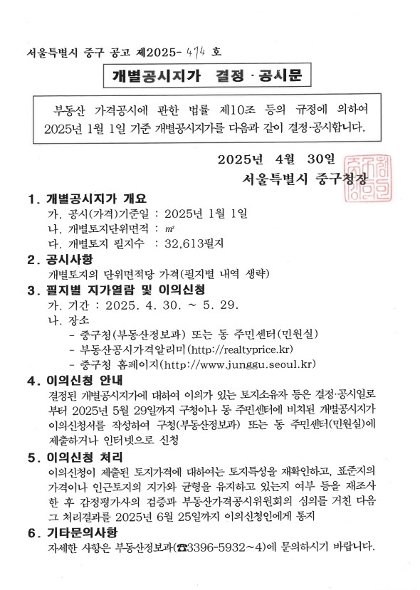 | 제목 | 2025.1.1.기준 개별공시지가 결정 공시 | ||