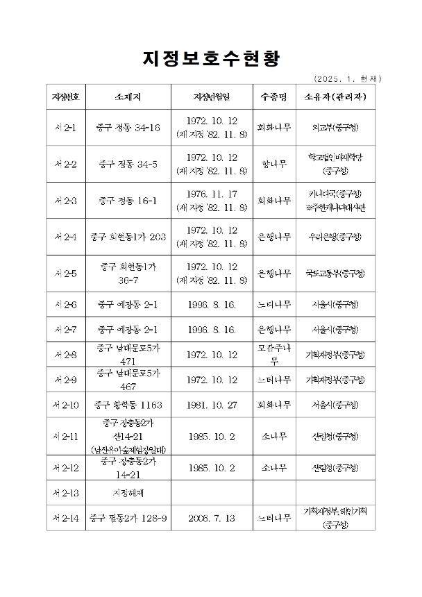 | 제목 | 2025년 지정보호수 현황 | ||